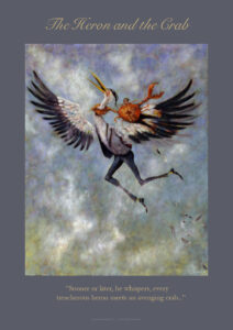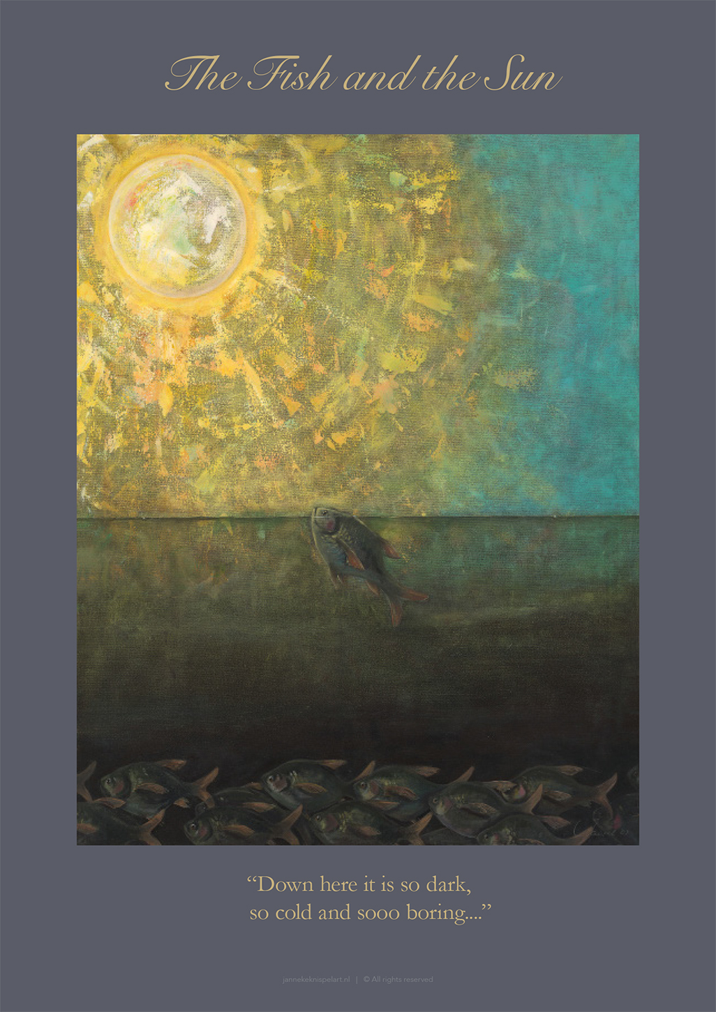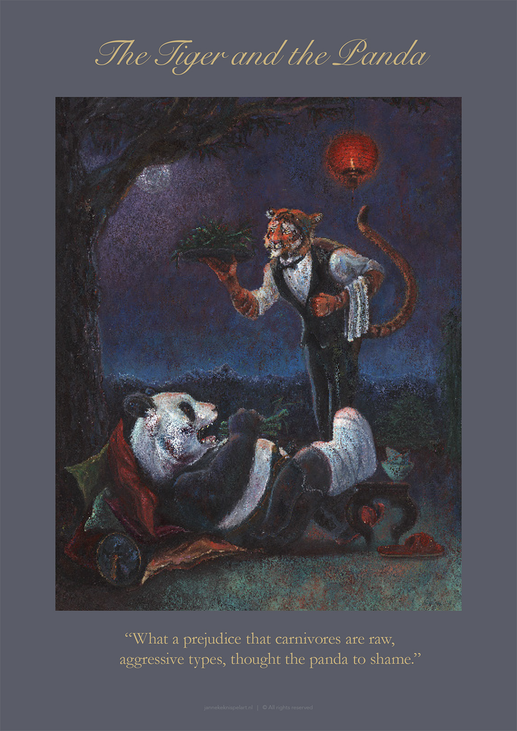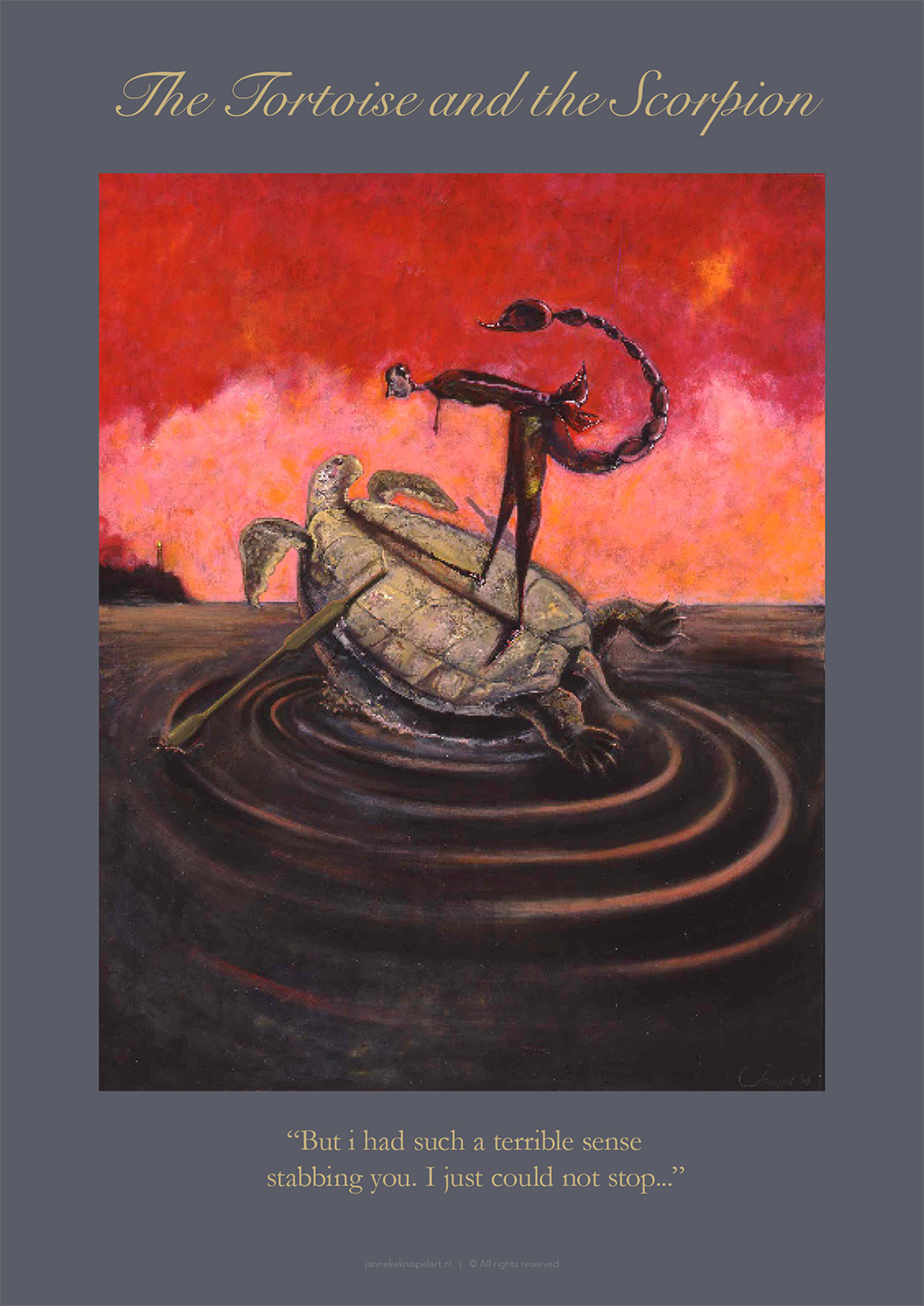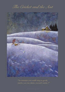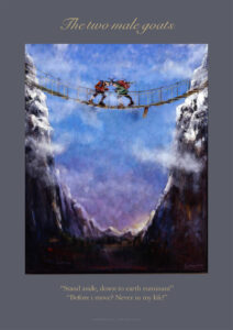 Janneke maakte haar fabels in een ‘literaire’ stijl, je proeft iets van de verhalen in de schilderstijl. Met wat ‘dichterlijke vrijheid’ hoef je alles niet zo letterlijk te nemen, is er plaats voor een beetje humor en kun je je fantasie de vrije loop laten.